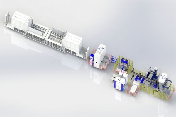 巖棉自動復(fù)合生產(chǎn)線,可以自動鋪設(shè),并針對三層夾芯板進(jìn)行無污染涂膠。自動化與環(huán)保兼得。