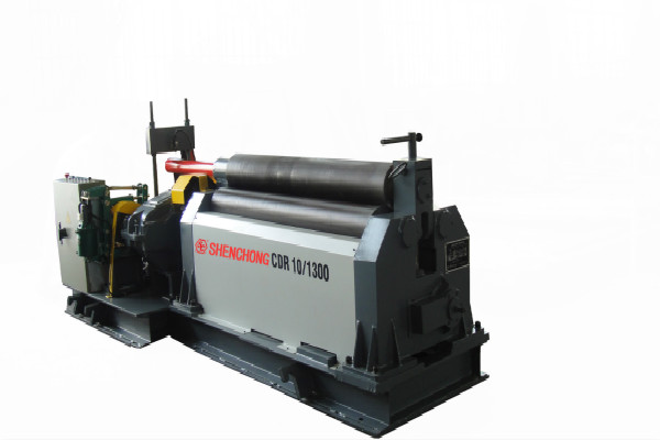機(jī)械式三輥對(duì)稱式卷板機(jī):機(jī)械式三輥對(duì)稱式卷板機(jī)性能特點(diǎn):該機(jī)結(jié)構(gòu)型式為三輥對(duì)稱式,上輥在兩下輥中央對(duì)稱位置作垂直升降運(yùn)動(dòng),通過(guò)絲桿絲母蝸桿傳動(dòng)而獲得,兩下輥?zhàn)餍D(zhuǎn)運(yùn)動(dòng),通過(guò)減速機(jī)的輸出齒輪與下輥齒輪嚙合,為卷制板材提供扭矩。該機(jī)缺點(diǎn)是板材端部需借助其它設(shè)備進(jìn)行預(yù)彎。