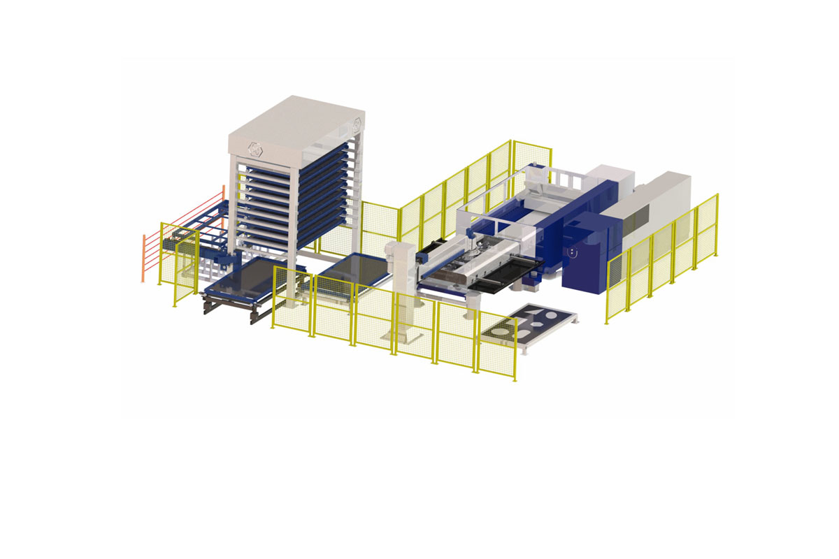 項(xiàng)目方案中鈑金智能料庫及上下料機(jī)構(gòu)配激光切割機(jī)。